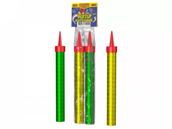 Первая подкатегория включает наборы фейерверков для украшения тортов, которые представляют собой небольшие трубки (картонные либо пластиковые), наполненные пиротехнической смесью. В нижней части каждого фейерверка имеется заостренная стойка, предназначенная для втыкания в верхнюю часть торта. Вторая подкатегория также предлагает вам пиротехнические фонтаны в виде бутылки шампанского и прочие дизайнерские решения для сервировки стола.